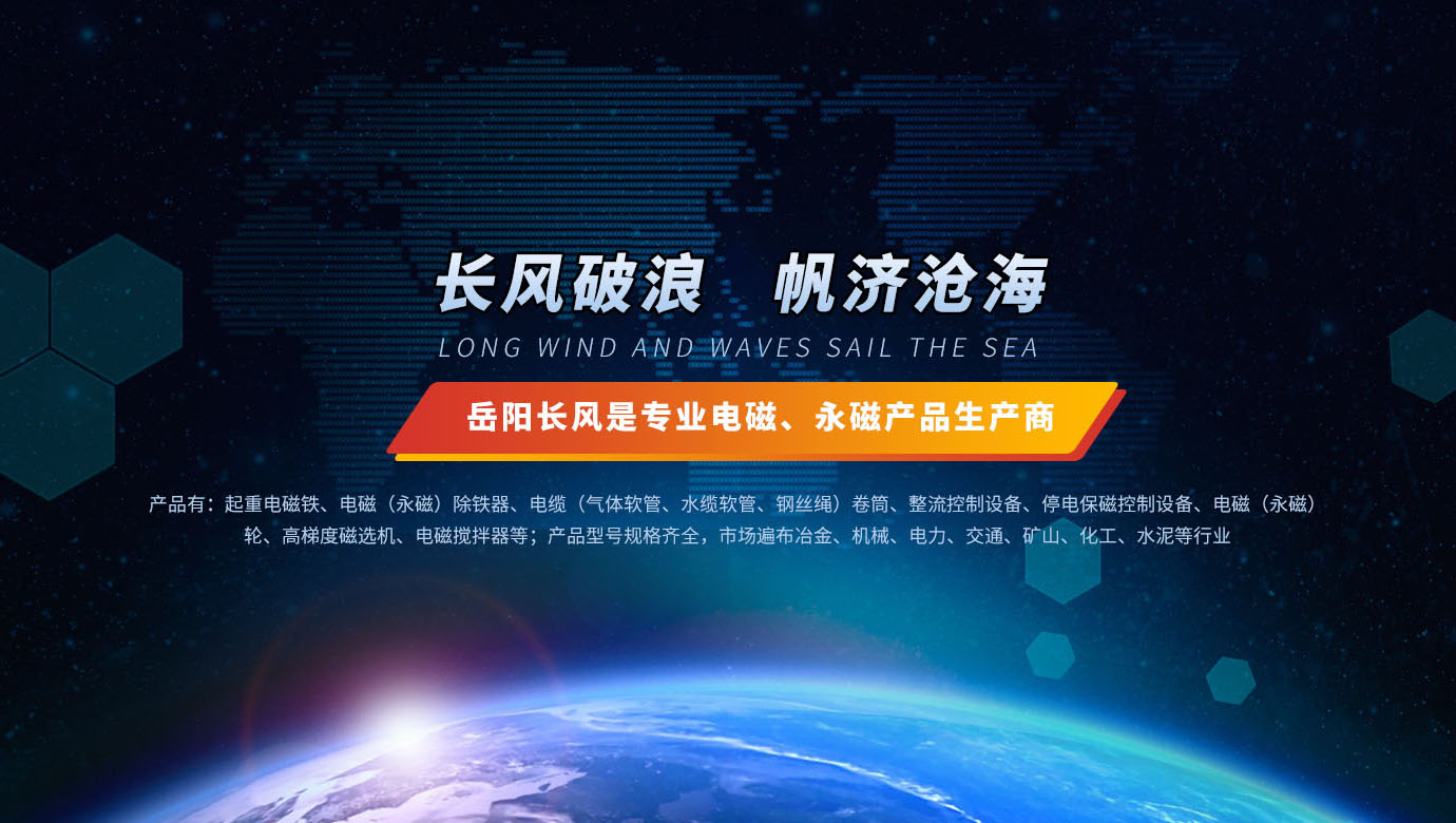 岳陽長風電磁機械有限公司是生產電磁、永磁產品的專業廠家,傳統產品有:起重電磁鐵、電磁(永磁)除鐵器、電纜(氣體軟管、水纜軟管、鋼絲繩)卷筒、整流控制設備、全免維護停電保磁控制設備、電磁(永磁)輪、高梯度磁選機、電磁攪拌器等;產品型號規格齊全,市場遍布冶金、機械、電力、交通、礦山、化工、水泥等行業,產品暢銷國內二十多個省市自治區,并遠銷于日本、歐美和東南亞等國家。近幾年來,又成功的開發和研制了磁力開卷器專用型永久磁鐵(電磁鐵)、吸吊鋼帶卷用的高溫起重電磁鐵等高科技產品,深受各大鋼鐵公司薄板生產廠家的青睞。